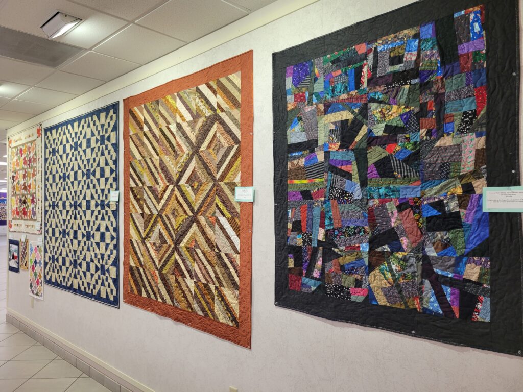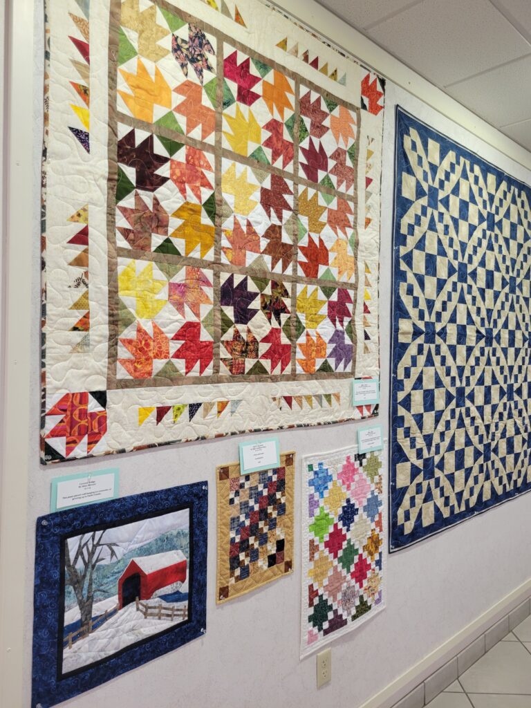 This year, the Sugar Creek Quilters’ Guild members have been working hard to create unique quilts to share with the community during their annual spring show. There are over 35 textiles of various sizes and shapes on display. The techniques used include machine-sewn, hand-sewn, and machine embroidered. Some of the items are quilted by hand, some by machine, and some on a long-arm sewing machine.